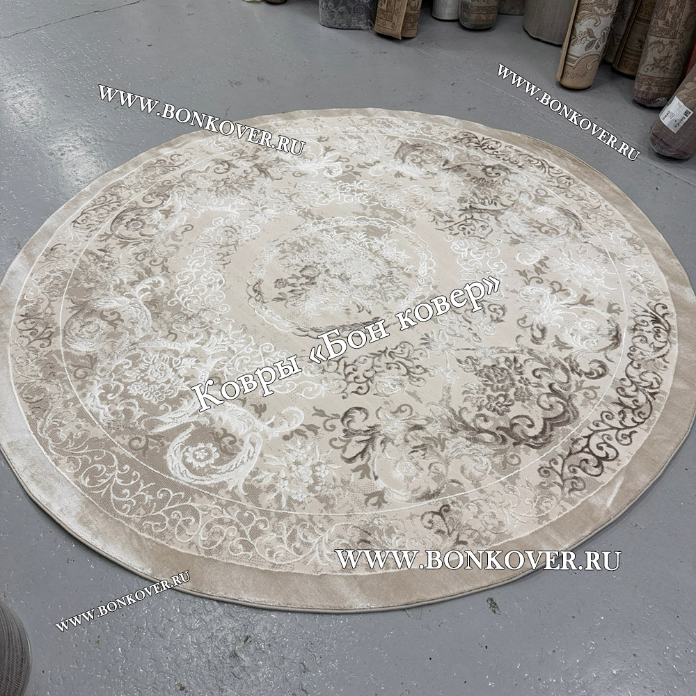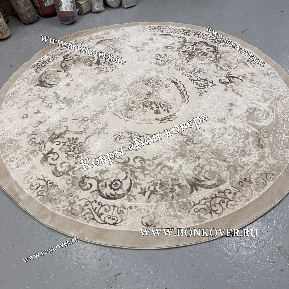 Турецкий Ковер Для Гостиной Дизайн 46 Бежево-Коричневый Круг