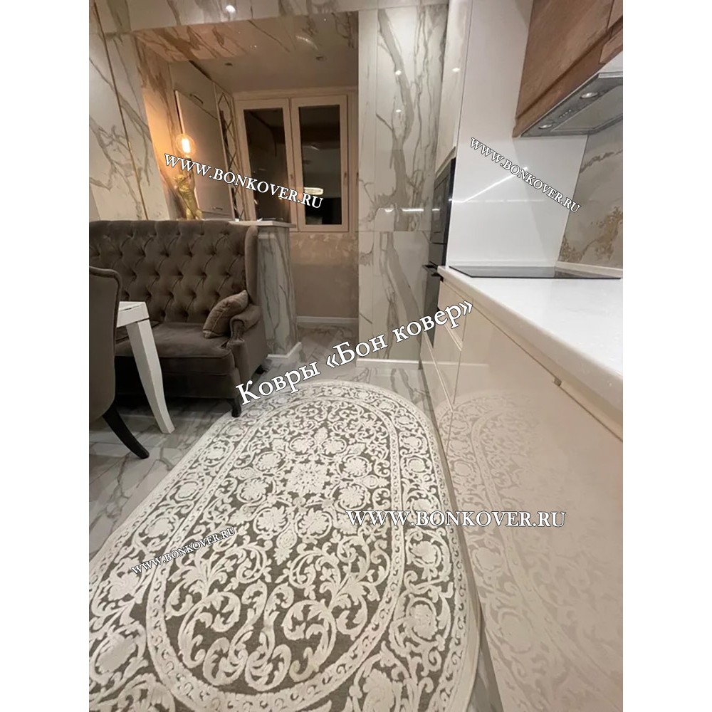 Импозантный Овальный Шелковистый Ковер Для Гостиной Дизайн 22263 наполняет интерьер помещения теплом и уютом, гармонично сочетает в себе изящество и красоту. Он соткан из современных материалов, прочный и долговечный.